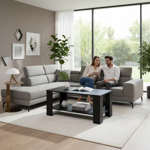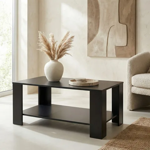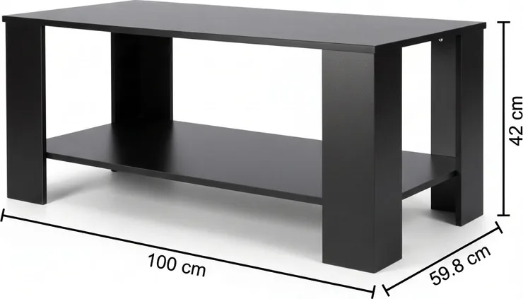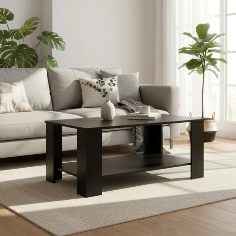 שולחן לסלון בעל מראה מודרני | מדף תחתון לעתונים ספרים וציוד נלווה | צבע שחור