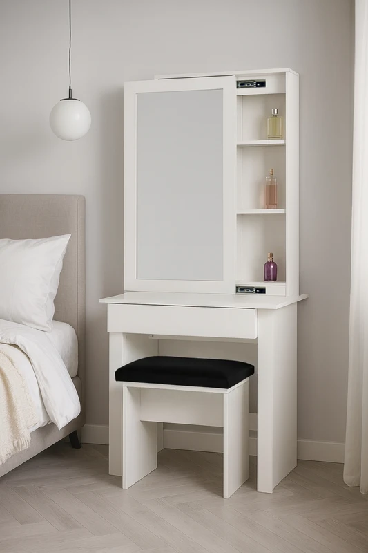שידת איפור מהממת | 3 מדפים | מגירה גדולה | מראה איכותית | כיסא מרופד מתנה |