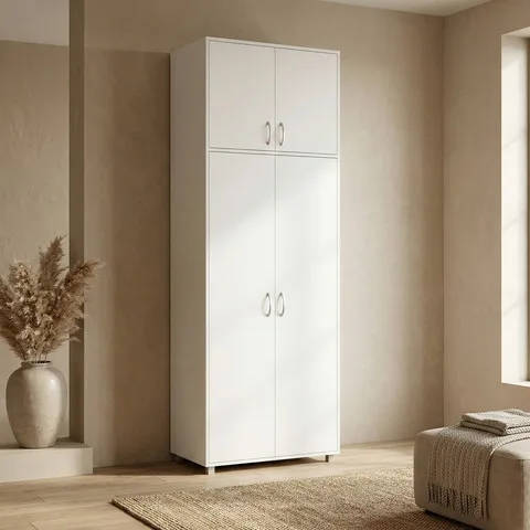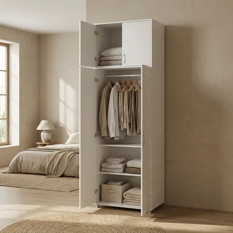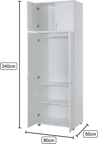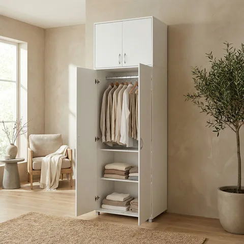 ארון בגדים גבוה 2 דלתות | משולב ארון עליון לתוספת אחסון | מדפים ותליה
