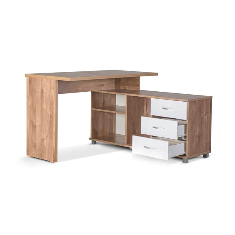 עמדת עבודה פינתית | 3 מגירות | תאים יעודיים לכונן ומדפסת וקלסרים |