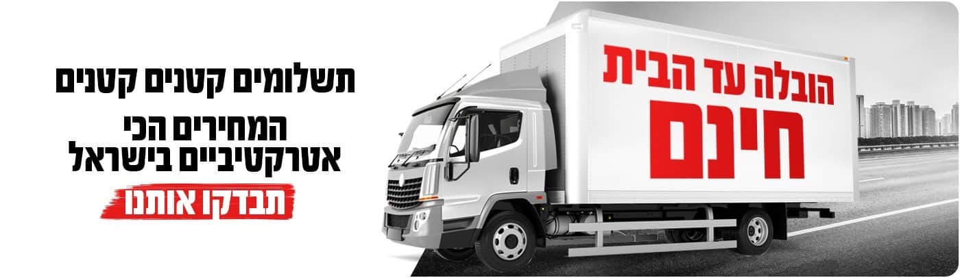 - בתים ללא מעלית - במבצע הובלה חינם המוצר ימסר לפני המדרגות | עלות סבלות ידנית 50 ש״ח לכל קרטון לכל קומה ישירות לסבל | בהזמנת הרכבה סבלות עד קומה 2 ללא עלות